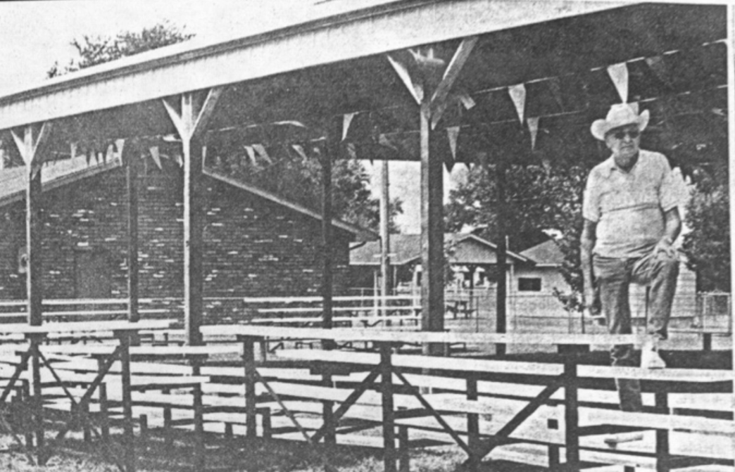 Charles Dawes stands on the bleachers at the newly established Adawe Park, 1986