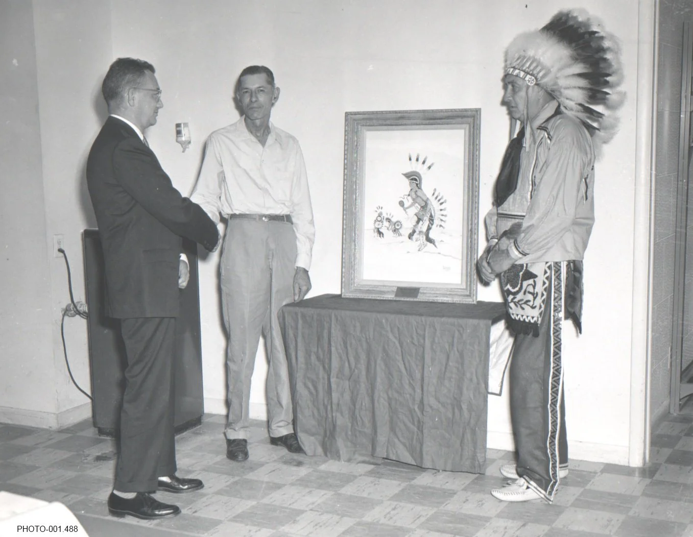 Beginning in 1939, Edwards served the Ottawa Tribe of Oklahoma as Secretary-Treasurer for more than thirty years. His tenure included years the Ottawa operated as a terminated tribe. As an artist, he was a frequent participant in the Philbrook Museum’s Indian Annual art competition, held from 1946 to 1979. Over his career, he entered twenty-five works and won four awards, including First Place in the Woodlands category in 1960. Two of his art pieces were even purchased by Robert F. Kennedy.