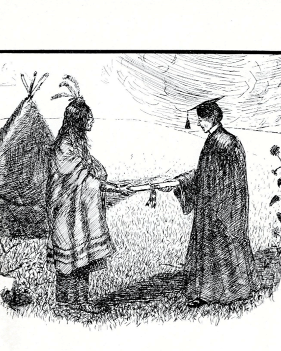 First page of The Ivy Leaf yearbook (1902). While acknowledging Ottawas aided in the founding of OU, this visual obscures Ottawa dispossession and the failure of OU to serve Ottawa students in the early 20th century.