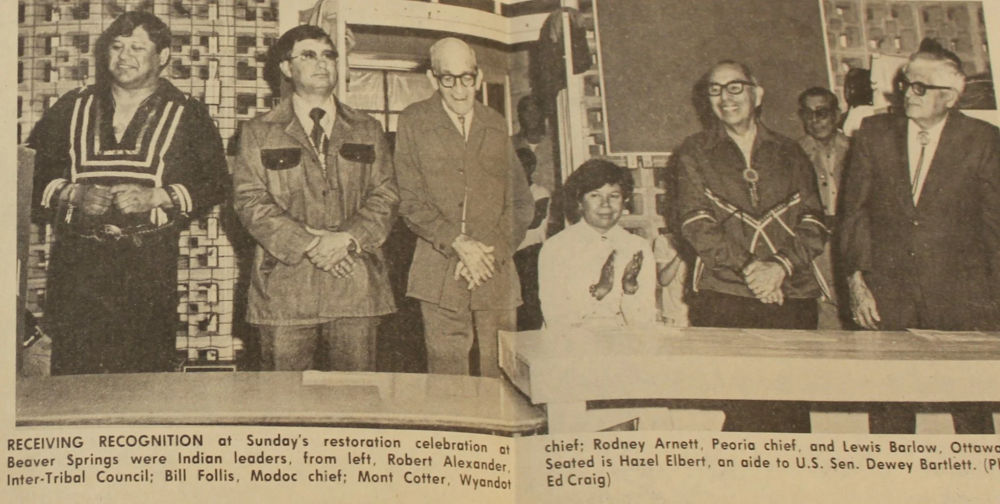 As chief during the restoration campaign, Barlow spearheaded the political effort. He successfully solicited support letters from a range of politicians and government officials, and he coordinated closely with Robert Alexander as tribal business manager, John Ghostbear as tribal attorney, and the leaders of the other terminated tribes of Ottawa County. This group worked with the staff of Senator Dewey Bartlett to devise model legislation and shepherd it through Congress.