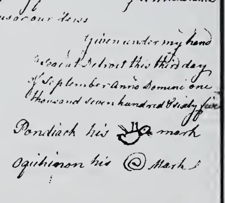 Tribal leaders often signed treaties with a symbol of their doodem or clan, and the Ottawa bands who resided near the Maumee River were generally of the Otter clan. Pontiac signed documents with an image of an Otter on its back, and it appears that Au-goosh-away did the same.
