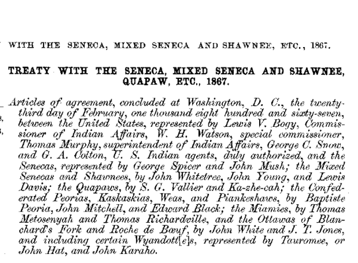 Treaty of Seneca, Mixed Seneca, Shawnee….Ottawa
